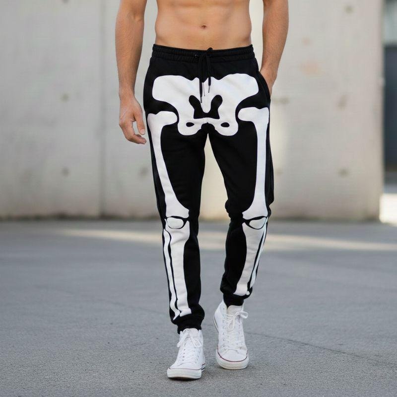 Make a bold statement with these Men’s Skeleton Jogger Pants, crafted from 100% premium cotton for unbeatable comfort and breathability. Designed for everyday wear with an edgy twist, these black joggers feature a striking white skeleton bone graphic print that stands out whether you're lounging, heading to the gym, or styling a streetwear look. The soft cotton fabric feels smooth against the skin while allowing airflow, making these sweatpants perfect for casual wear, workouts, travel, or relaxed weekends. The elastic waistband ensures a secure yet comfortable fit, and the tapered leg design gives a modern athletic silhouette. Whether you're dressing for Halloween, street fashion, athleisure outfits, or cozy home wear, these cotton skeleton joggers deliver comfort and standout style in one piece.