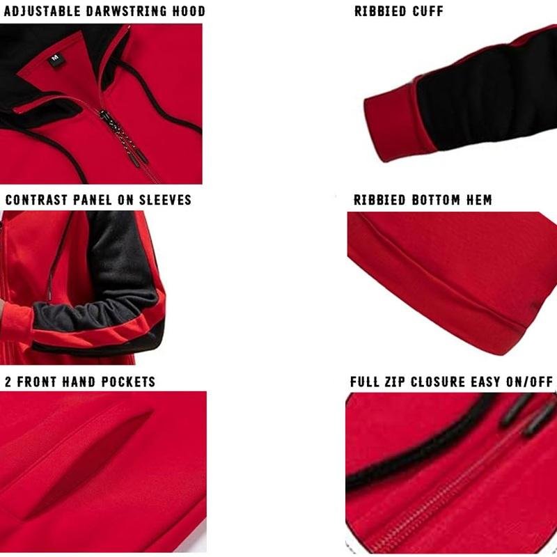 Experience the perfect blend of comfort, warmth, and modern sportswear style with the Casual Contrast Panels Raglan Sleeve Zip-Up Hoodie. Designed for training sessions, outdoor activities, and everyday casual wear, this hoodie is made from high-quality 80% cotton and 20% polyester fleece, offering a soft feel while delivering reliable warmth and durability. The hoodie features contrast color raglan sleeves, hood, and sleeve panels, creating a bold athletic design that enhances both style and mobility. Raglan sleeves allow better arm movement, making the hoodie suitable for gym workouts, training, or relaxed daily wear. A full front zipper closure provides convenience and flexibility, allowing you to easily put the hoodie on or take it off depending on the weather or activity. The design also includes two side split kangaroo pockets, offering practical storage for essentials like phones, keys, or cards while keeping your hands warm during cooler conditions. For added comfort and insulation, the hoodie is finished with 2×2 ribbed cuffs and bottom hem, helping to lock in warmth while ensuring a secure fit. Engineered by Top King Gear, this hoodie is built to keep you comfortable whether you’re training, traveling, heading to the gym, or enjoying casual streetwear style. With customization options available for colors, logos, and sizes, this hoodie is also an excellent choice for sports teams, fitness brands, promotional apparel, and private-label clothing collections.