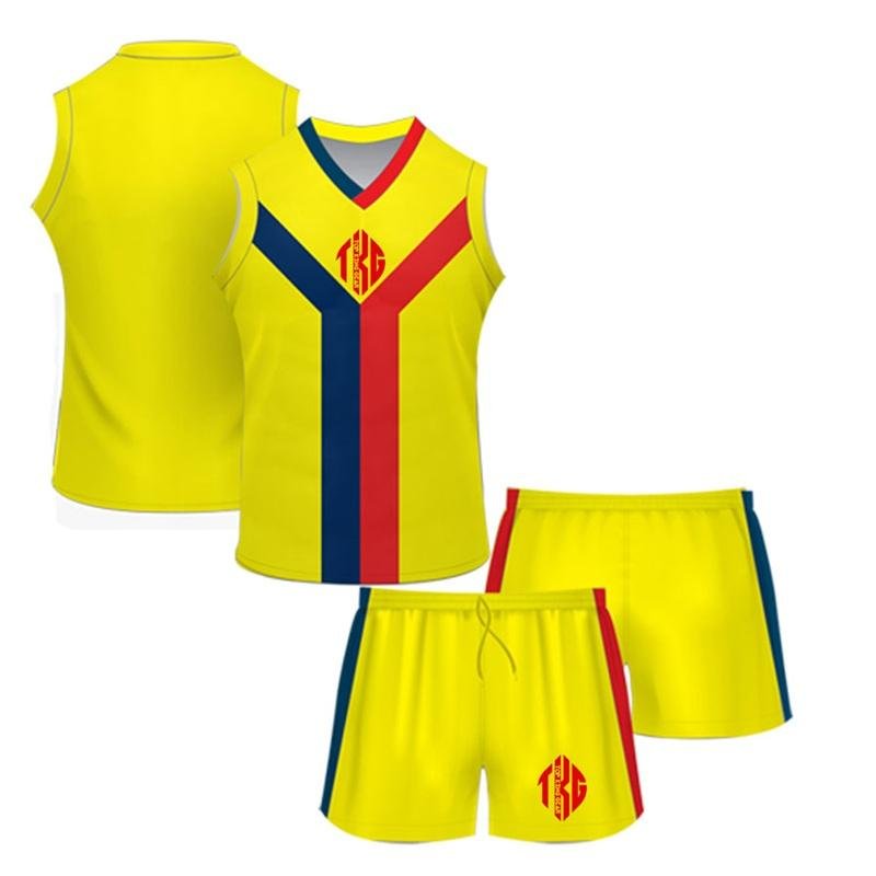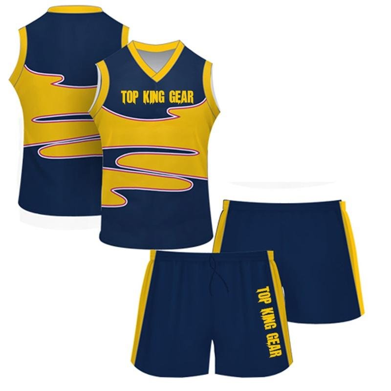 Elevate your team’s performance with Custom Sublimated AFL Uniforms from TOP KING GEAR Sports Wear, precision-engineered for comfort, durability, and style. Crafted from 100% polyester interlock fabric (250g and 290g options), these uniforms are lightweight, breathable, and ideal for intense training sessions, matches, and tournaments. The full sublimation printing technology ensures vibrant colors and sharp designs that become part of the fabric, eliminating the risk of peeling, cracking, or fading. This allows complete customization of logos, team colors, player names, numbers, and collar options, ensuring your team’s identity shines on the field. Designed for schools, training academies, clubs, professional leagues, and sports teams, these AFL jerseys and shorts provide maximum comfort and mobility, helping players stay cool and focused during games. The carefully selected fabrics are popular for their softness, durability, and moisture-wicking properties, keeping athletes fresh while performing at their best. Whether for competitive matches, practice sessions, or team events, these sublimated AFL uniforms offer a combination of professional-grade quality, functionality, and stylish design, tailored to the needs of modern athletes.