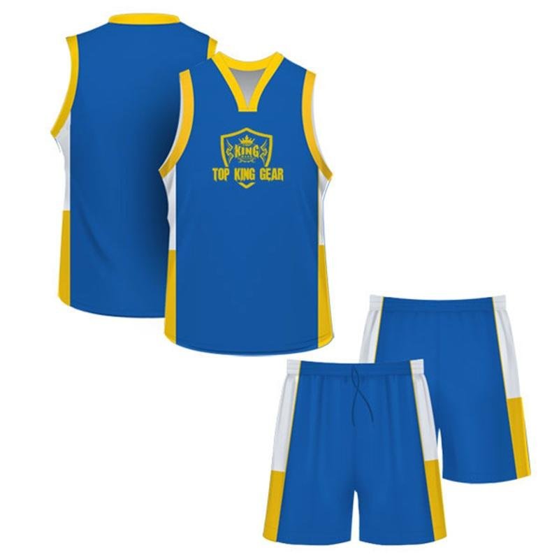 Step up your team’s game with Custom Sublimated Basketball Jerseys & Shorts, precision-engineered by TOP KING GEAR Sports Wear for performance, comfort, and style. Crafted from 100% polyester fabric, with options chosen according to customer preferences, these uniforms are lightweight, breathable, and durable—ideal for high-intensity basketball games, training sessions, and tournaments. The full sublimation printing process embeds vibrant colors and designs directly into the fabric, ensuring long-lasting, fade-resistant uniforms. Teams can fully customize colors, logos, player names, numbers, sizes, and collar styles, creating a unique identity that stands out on the court. Designed for schools, training academies, clubs, professional leagues, and amateur teams, these basketball jerseys and shorts combine comfort with functionality. The carefully selected fabrics keep players fresh, wick away moisture, and provide flexibility, allowing maximum mobility for running, jumping, and fast-paced gameplay. Whether for competitive matches, practice sessions, or team events, these sublimated basketball uniforms provide a professional-grade look, durability, and style, making them the perfect choice for modern sports teams.