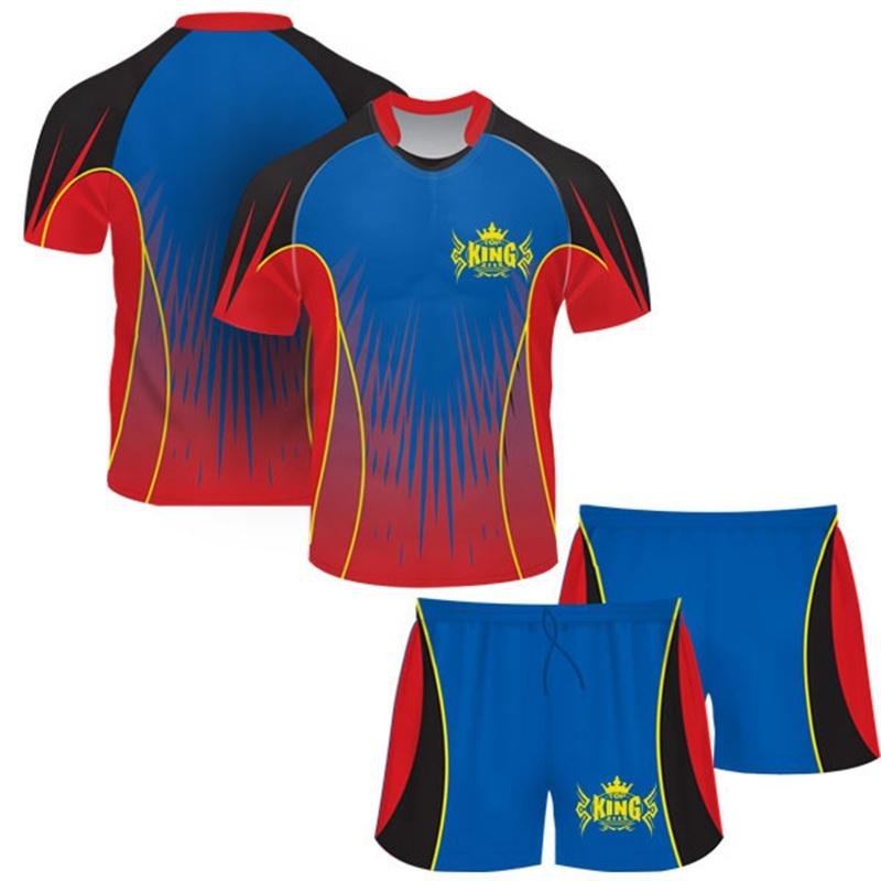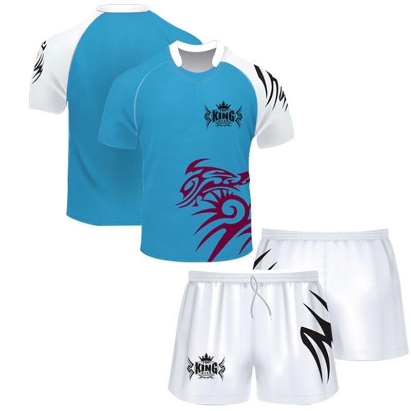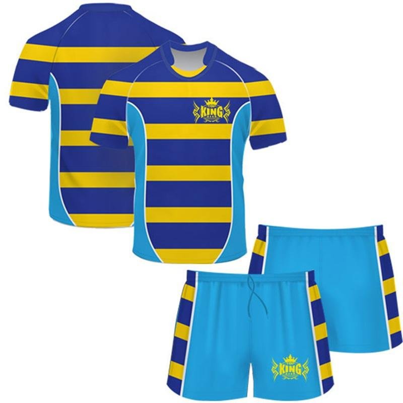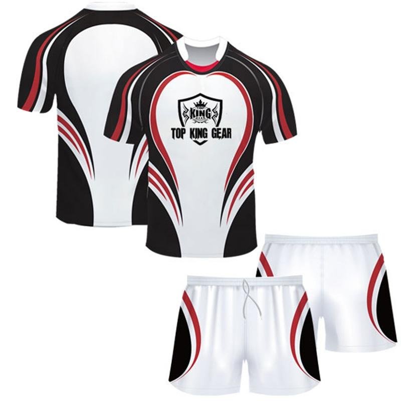 Equip your team with Custom Sublimated Rugby Jerseys & Shorts, precision-engineered by TOP KING GEAR Rugby Sports Wear for comfort, durability, and high performance. Made from 100% micro polyester, these uniforms are lightweight, breathable, and designed to keep athletes fresh and agile during intense matches and training sessions. The full sublimation printing process allows vibrant, long-lasting designs that are fully integrated into the fabric, ensuring no fading, peeling, or cracking. Teams can customize logos, colors, player names, numbers, sizes, and collar styles, creating a unique professional identity on the field. Designed for training academies, schools, clubs, leagues, and professional teams, these rugby uniforms combine comfort, flexibility, and durability. The carefully chosen fabrics provide optimal moisture-wicking and mobility, keeping players focused during high-intensity play. Whether for competitive matches, practice, or team events, these sublimated rugby jerseys and shorts offer a professional-grade, stylish, and functional solution for modern rugby teams.
